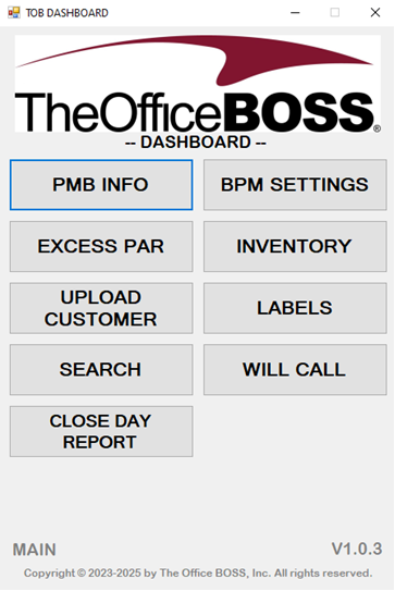 BOSS DASHBOARD– One Tool to Bind them ALL! The BOSS DASHBOARD is a grouping of essential tools for managing your customer data, tracking excess parcel payments, uploading, and refreshing the inventory database, and much more… For Back Office Operations and Front Office Customer data lookup, the BOSS DASHBOARD is invaluable at saving time! The data is yours! Make it easy to use