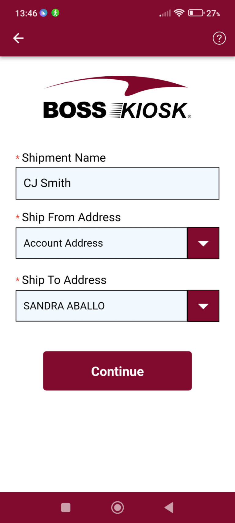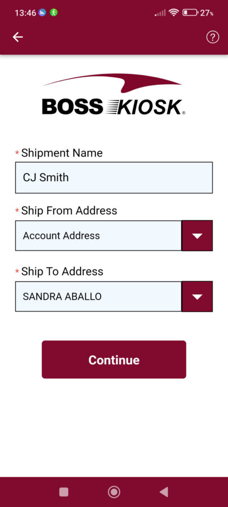 Enter addresses for sender and recipient from the app or directly at the kiosk.