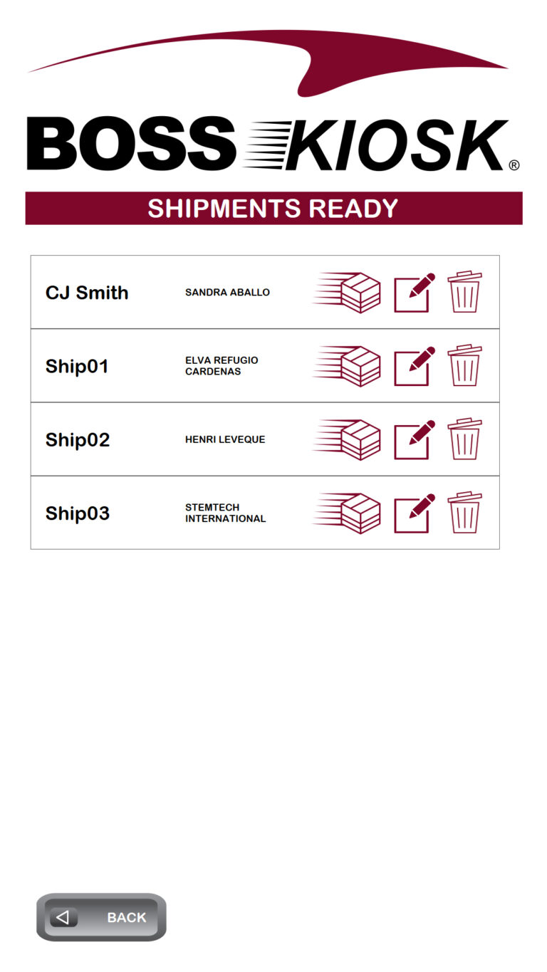the Kiosk screen. The BOSS Kiosk Parcel Dimensioning