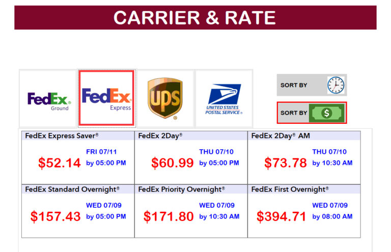 SHIPPING PICKUP TIMES