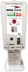 BOSS Kiosk ®—Self-Serve Shipping Kiosk. In-store, high parcel processing, no labor! It’s a no-brainer. Address your in-store highest and fastest growing cost: Labor! Add a BOSS Kiosk to your store and reduce your customer wait-time to zero! Fully compatible with Postalmate ®–this system does not replace your in-house system but works as a seamless supplement!