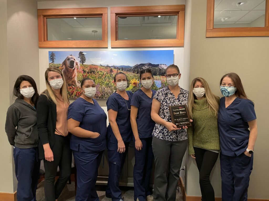 Our winner for small business Best Boss of 2021 and winner for a team lunch at Fifty-Fifty Brewing Co., is Dr. Jacueline Delaney of Sierra Crest Dental. Receiving 3 heartfelt and detailed nominations from Jamie Burge – Dental Hygienist, Haley Roblez – Scheduling Coordinator and Evelyn Mora – Dental Assistant. Jamie wrote” She has been an amazing leader through all of the new Covid guidelines which made me feel safe when I returned back to work.” Haley concurs, and adds” Dr. D is a very caring soul. She gives back to our community and beyond each quarter with monetary donations. I genuinely look up to her, not only as my boss but as the generous & hilarious individual that she is. I admire her professionalism, talent, and dedication to our team and patients (and even her perfectionism!)”